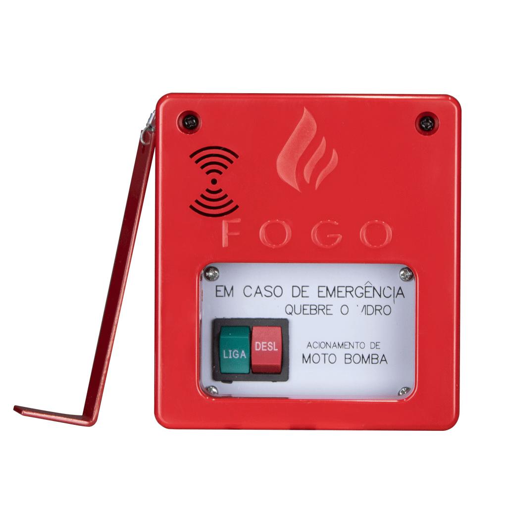 Em caso de incêndio basta quebrar o vidro com o martelinho e acionar a chave “LIGA”.