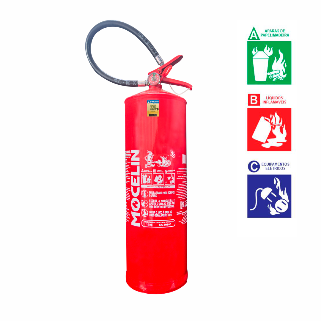 O extintor de fosfato monoamônico, também conhecido como extintor de pó químico ABC (justamente por controlar incêndios causados pelas classes A, B e C) é altamente indicado para controlar as chamas quando os incêndios se dão em ambientes industriais, comerciais e até mesmo em residências.