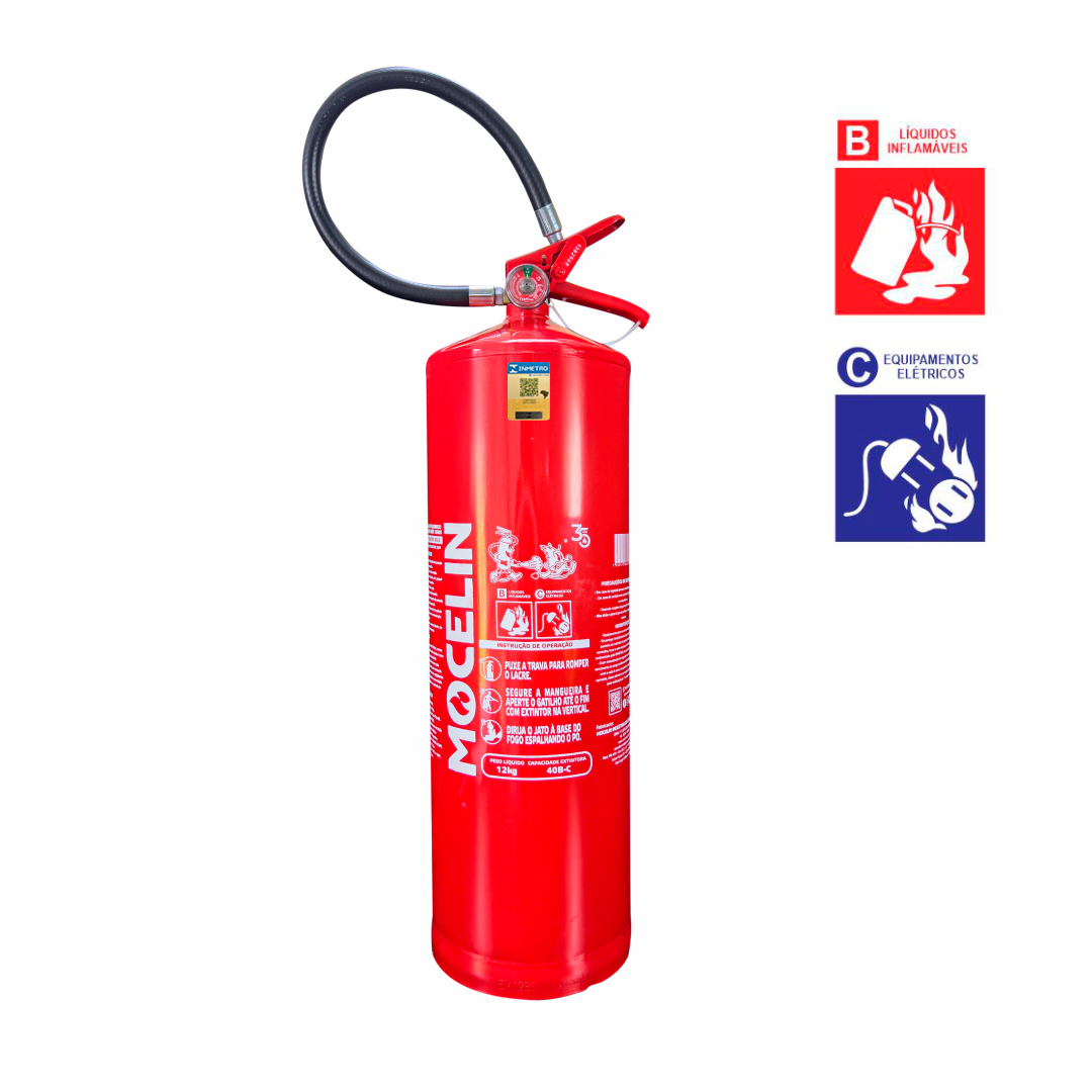 É direcionado aos incêndios de foco B e C — líquidos, sólidos e gases inflamáveis além de equipamentos elétricos. O material também não conduz corrente elétrica, tornando-o ideal para chamas de classe C.