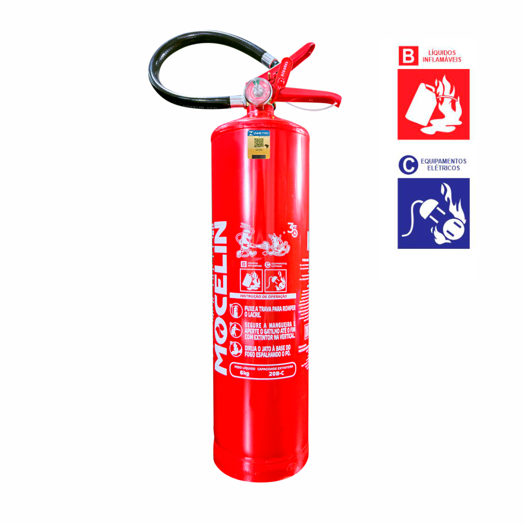 É direcionado aos incêndios de foco B e C — líquidos, sólidos e gases inflamáveis além de equipamentos elétricos. O material também não conduz corrente elétrica, tornando-o ideal para chamas de classe C.