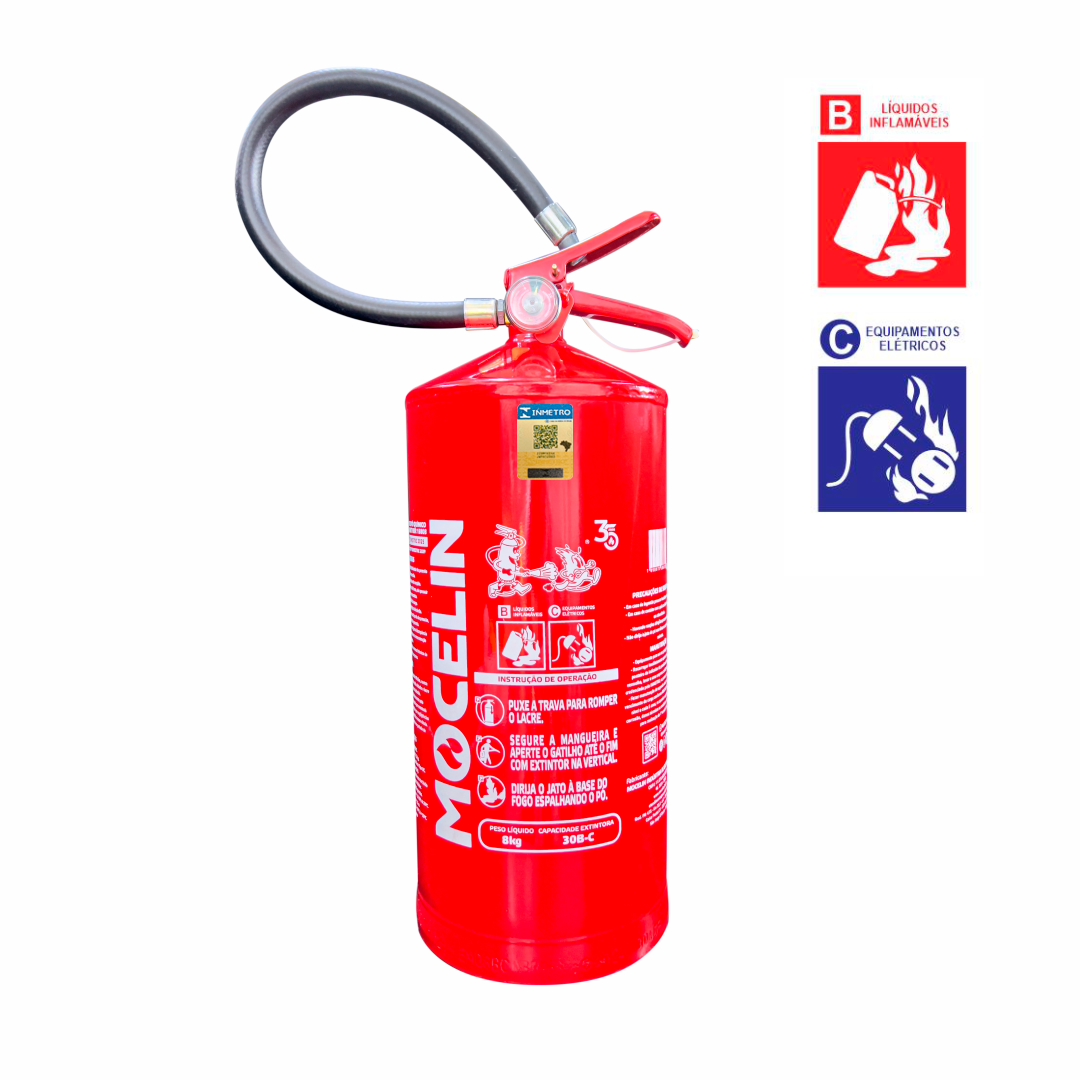 É direcionado aos incêndios de foco B e C — líquidos, sólidos e gases inflamáveis além de equipamentos elétricos. O material também não conduz corrente elétrica, tornando-o ideal para chamas de classe C.