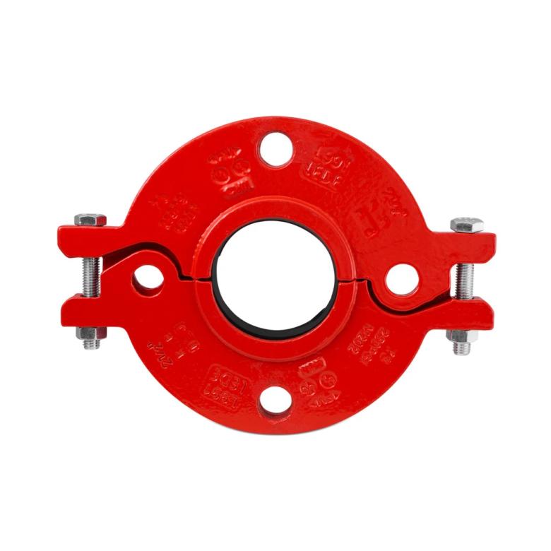 O flange ranhurado é fabricado em ferro fundido dúctil, de elevada resistência mecânica. Possibilita a intercambialidade entre sistemas ranhurados e flangeados.