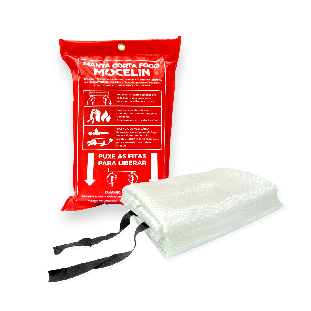 A Mocelin oferece a Manta Corta-Fogo 2,0 × 2,0 m, um equipamento indispensável para prevenção e combate rápido a pequenos incêndios.
