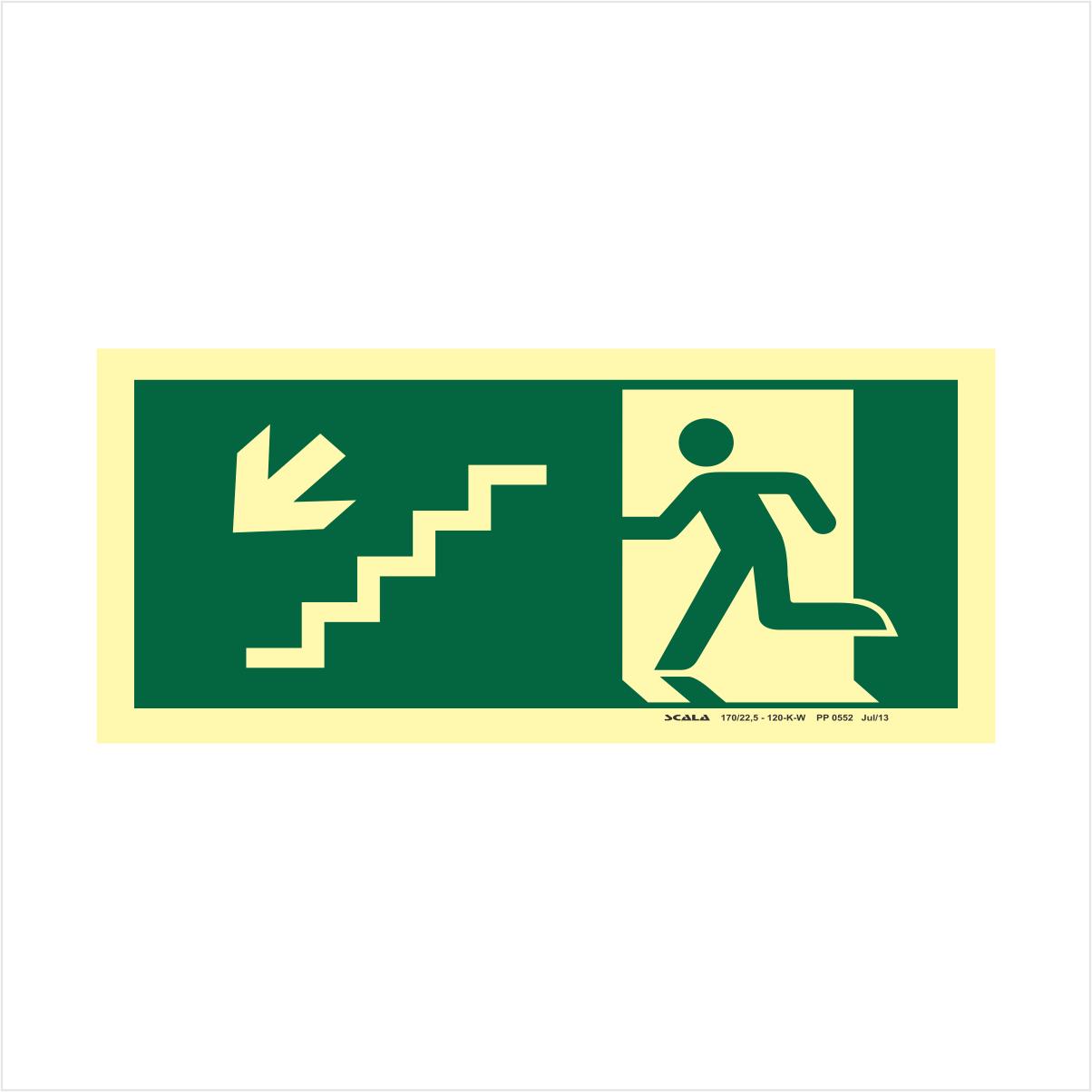 placa saida escada seta esquerda p/ baixo - pp 0552 s9